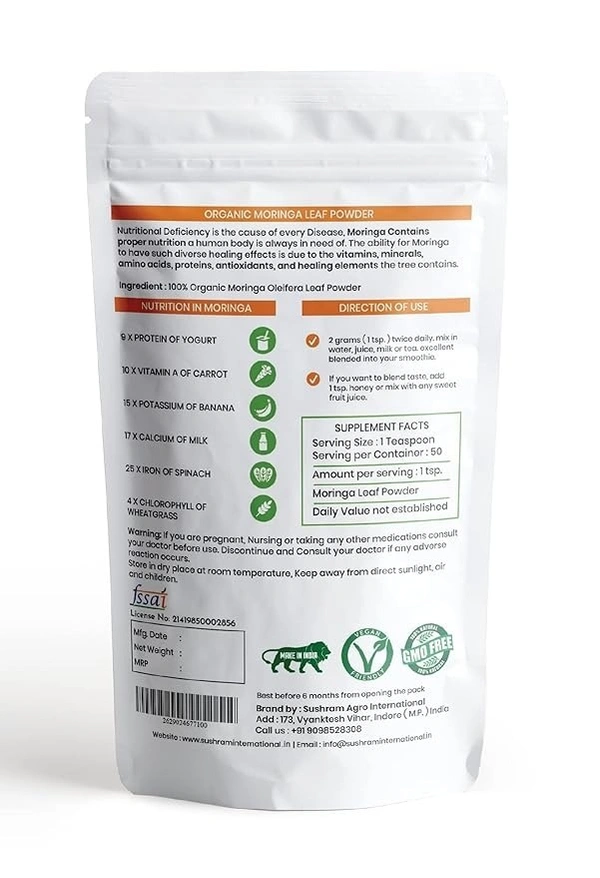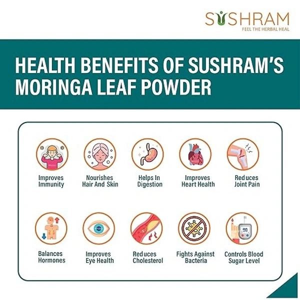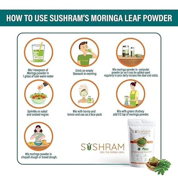 Sushram moringa powder superfood has a lot of health benefits. Although it is very popular as a food, people are not aware of the health benefits it provides. Moringa powder contains about 20 types of amino acids, 46 antioxidants, 36 anti-inflammatory compounds and more than 90 nutrients. Due to which it is considered one of the best nutritional supplements. Moringa powder contains high amounts of minerals like iron, calcium, and vitamins A, B, B1, B2, B3, B6, C, E as well as macro minerals, trace minerals and phytonutrients. Apart from this, it is also rich in high quality protein and fiber.